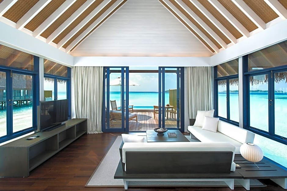 Dhoni Loft Water Villa is 1184 square feet and includes a queen-size bed 150-154 width.